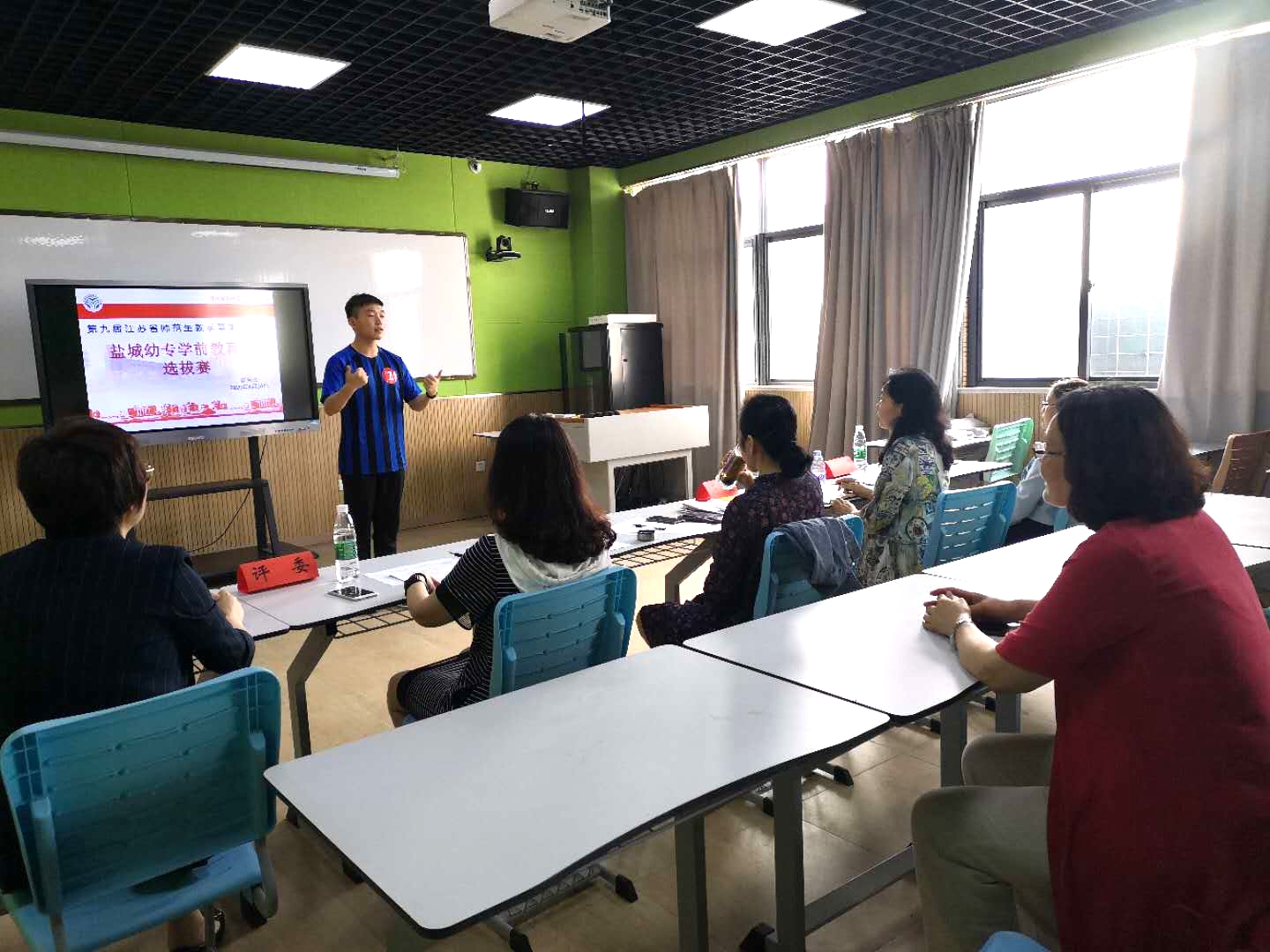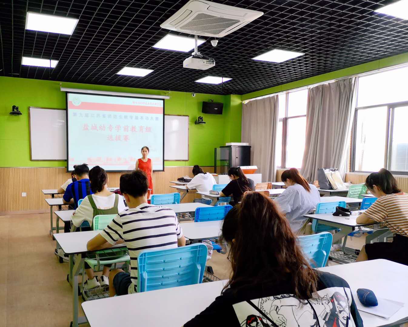 经学前教育学院一、二分部选拔推荐,本次选拔赛共9名同学参加。比赛完全按照省师范生基本功大赛的流程精心组织,设基础知识与应用(含国家幼儿园教师资格考试《综合素质》、《保教知识与能力》科目及《幼儿行为观察与分析》)、通用技能(模拟授课)、专业技能(环境布置设计、即兴幼儿歌曲弹唱、即兴幼儿舞蹈表演和即兴幼儿故事表演)等三部分8项内容。参赛同学赛前精心准备,认真对待,从容完成了各项比赛环节,展现出我校学前教育学生专业风采。最终从9名选手中选拔出2名同学作为我校种子选手参加2020年江苏省第九届师范生教学基本功大赛学前教育组比赛。