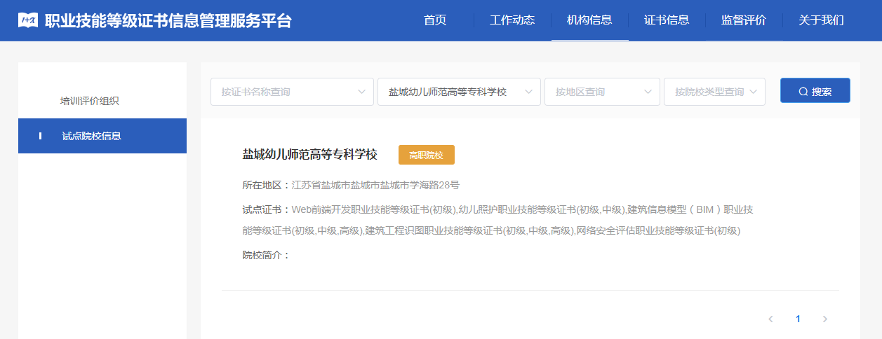 日前教育部网站公布,我校申报的:(1)建筑信息模型(BIM)职业技能等级证书(初级,中级,高级),(2)建筑工程识图职业技能等级证书(初级,中级,高级),(3)Web前端开发职业技能等级证书(初级),(4)幼儿照护职业技能等级证书(初级,中级),(5)网络安全评估职业技能等级证书(初级)等五种“1+X”证书试点学校,获得批准。