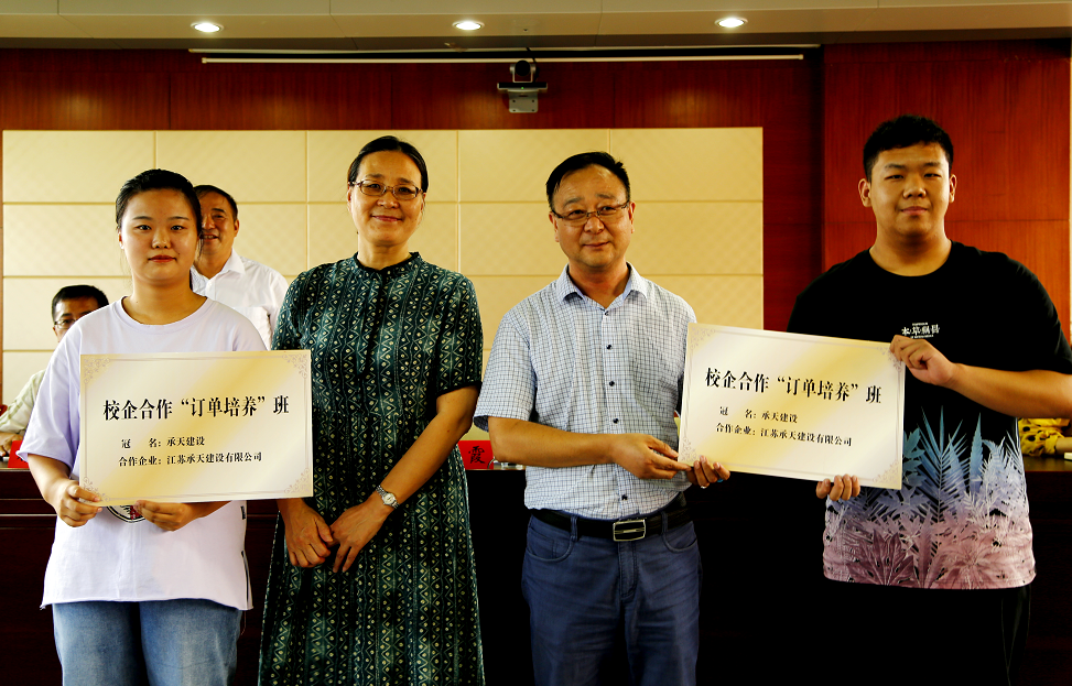 8月30日下午,我校建筑工程学院与江苏承天建设工程有限公司“校企合作订单培养班”授牌和“承天奖学金”发放仪式,在南校区隆重举行。崔霞副校长到现场指导并作讲话。江苏承天建设工程有限公司肖学湘董事长、顾裔总工程师、唐华行政人事部长,及建工学院班子成员参加了活动。仪式由钱达友院长主持。