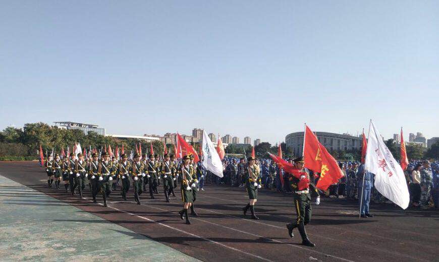 10月23日上午,我校2020级新生开学典礼暨军训动员大会在海洋路校区田径场隆重举行。校领导、各部门和二级学院负责人、承训军队教官、全体2020级新生和新生班级辅导员(班主任)出席大会。会议由副校长陈长飞主持。