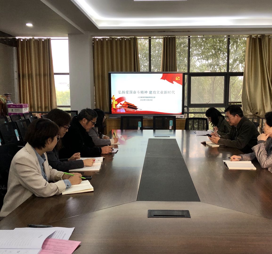 10月29日下午,人文教育学院教师党支部开展“弘扬爱国奋斗精神,建功立业新时代”主题党日活动。会议由支部书记叶捷主持,支部全体党员参加会议。