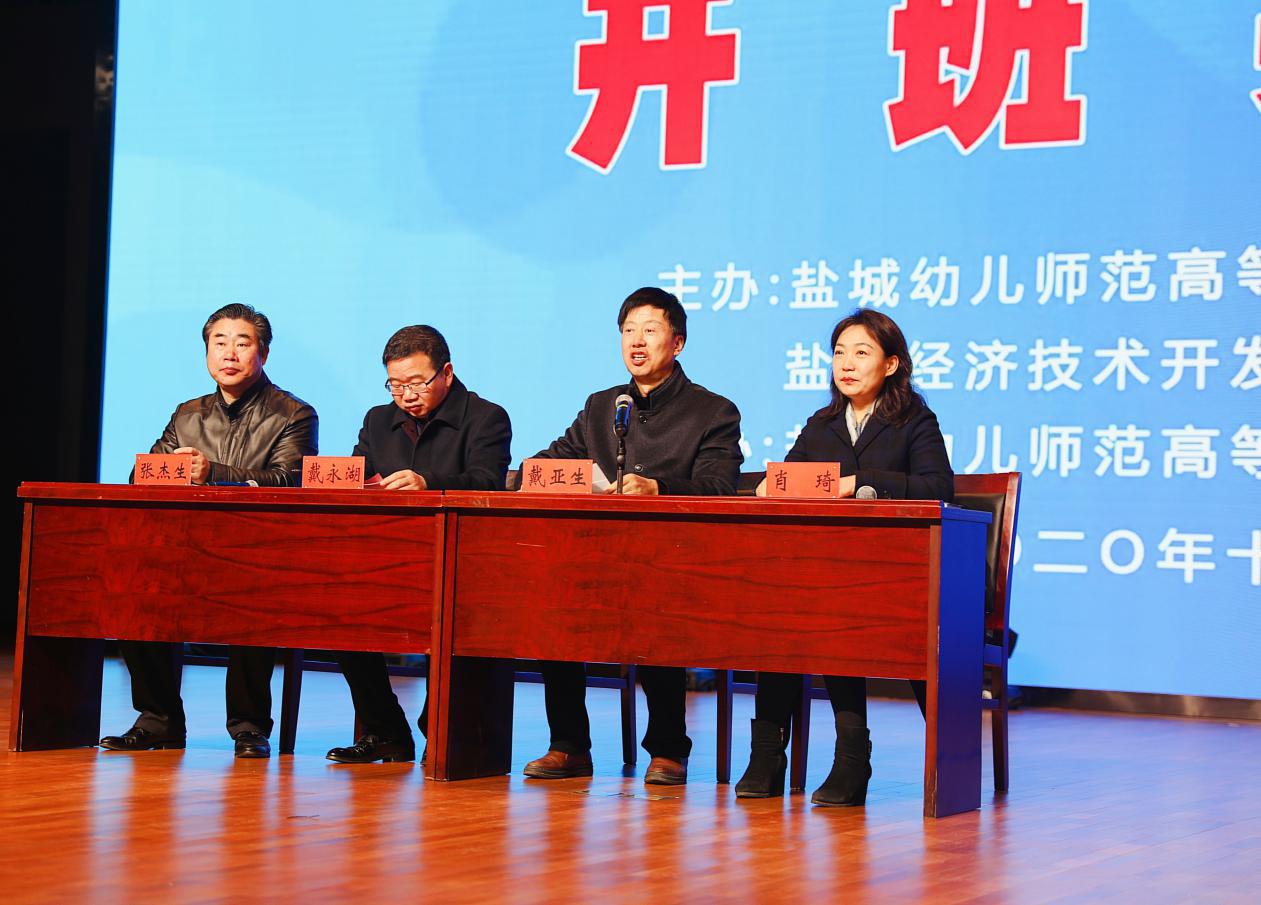 12月27日,由我校承办、学前教育研究所策划并组织实施的盐城市经济技术开发区2020年学前教育师资“浸润式”培训开班典礼在北师大附属学校学术报告厅举行。盐城幼儿师范高等专科学校党委委员、副校长戴永湖,盐城经济技术开发区社会事业局局长戴亚生,副局长张杰生出席会议。会议由盐城幼儿师范高等专科学校学前教育研究所负责人肖琦主持。