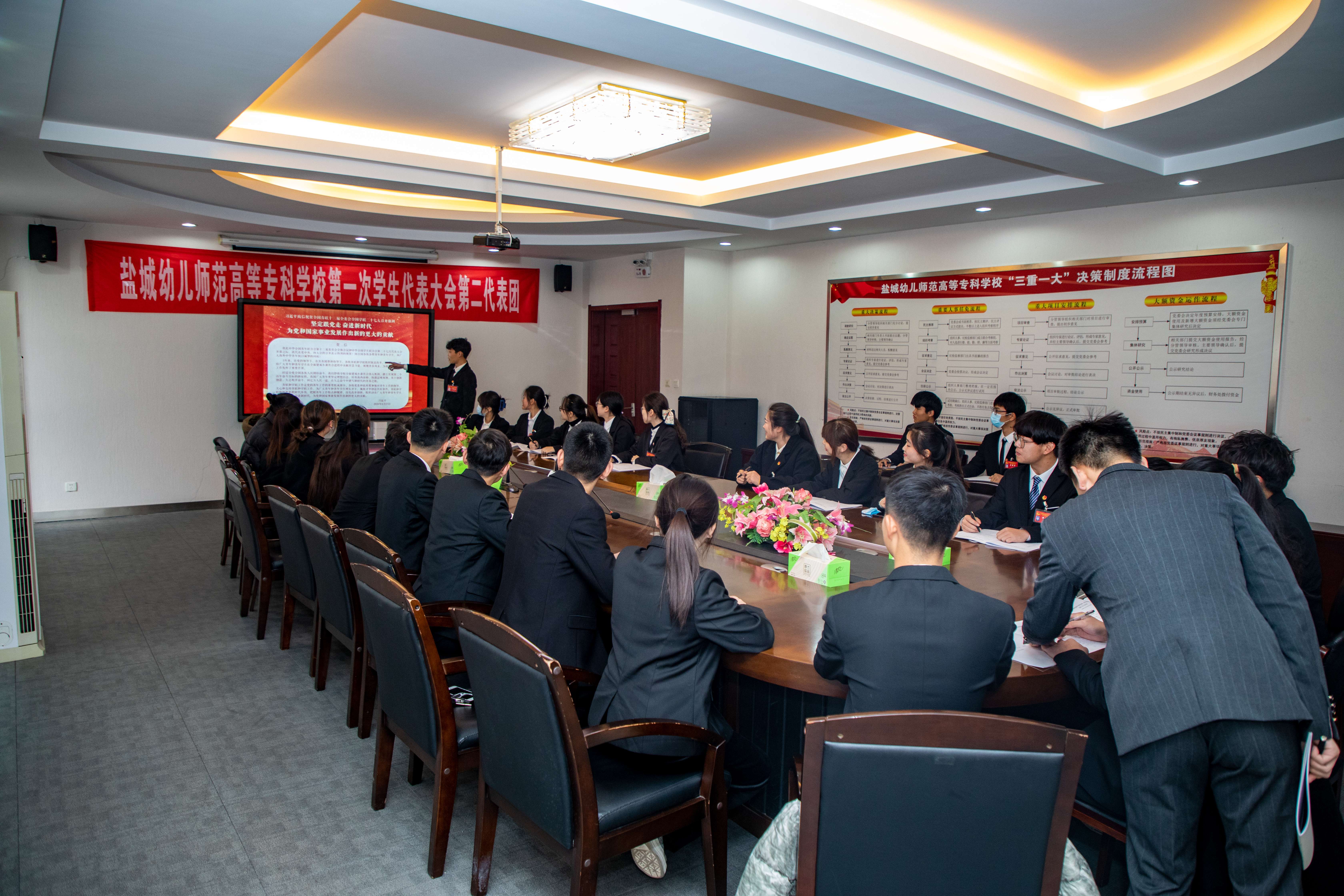 大会审议通过了《关于通过<盐城幼儿师范高等专科学校第一次学生代表大会工作报告>的决议》、《关于通过<盐城幼儿师范高等专科学校学生会章程(修订稿)>的决议》 、审议通过《盐城幼儿师范高等专科学校第一次学生代表大会选举办法》、审议通过新一届学生会委员会候选人名单、审议通过盐城幼儿师范高等专科学校第一次学生代表大会监票人、计票人名单。