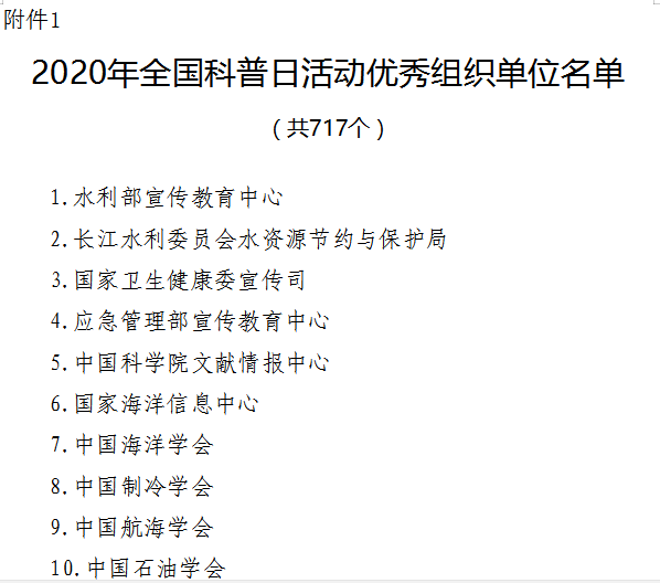 在2020年中国科协、中央宣传部、教育部、科技部、水利部、农业农村部、国家卫生健康委、应急管理部等部门联合举办的全国科普日活动中,我校荣获“2020年全国科普日活动优秀组织单位”。