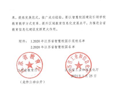 2021年1月,我校被江苏省教育厅、江苏省工业和信息化厅联合审核评定为江苏省智慧校园。这既是对我校进入新发展时期信息化建设的充分肯定,也为“十四五”规划信息化建设指明了方向。