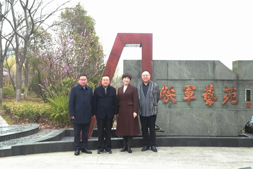 尤小刚会长、阳子秘书长首先来到海洋路校区铁军艺苑教学基地,感悟学校深厚的红色文化底蕴,听取学校历史沿革和鲁艺文化传承情况。