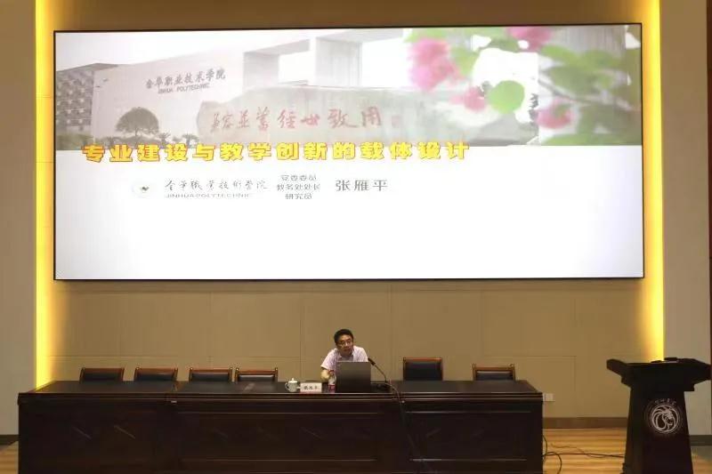 金华职业技术学院党委委员、教务处处长、研究员张雁平给大家开设了《专业建设与教学创新的载体设计》的讲座,具体从专业建设目标考核、专业综合测评与动态调整、特色专业领航计划、“双优”“双培”“双改”计划、产教融合高端平台建设、特色小班人才培养改革、课堂教学创新项目、主题教研活动八个载体进行了剖析。