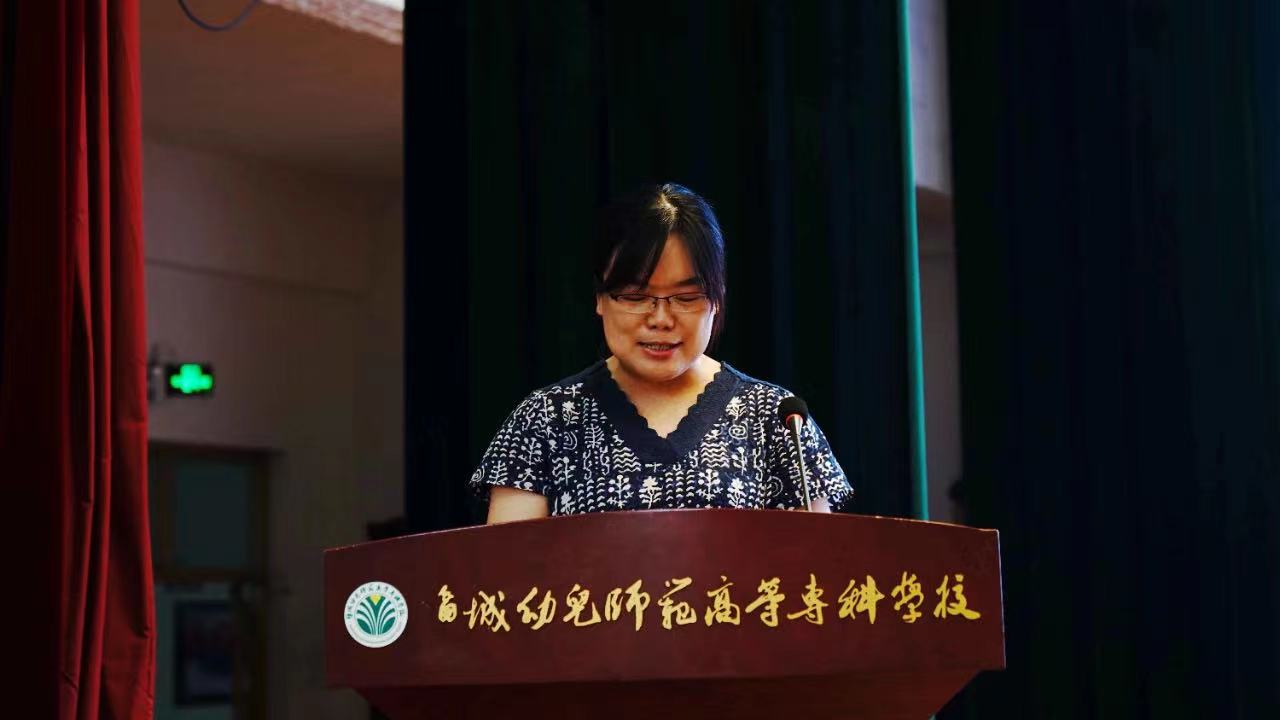 新教师代表储婷婷发言,对盐城市委组织部的人才引进政策及学校的重视和关切表示感谢,同时也表明了今后在盐城幼专工作的积极态度和坚定决心。
