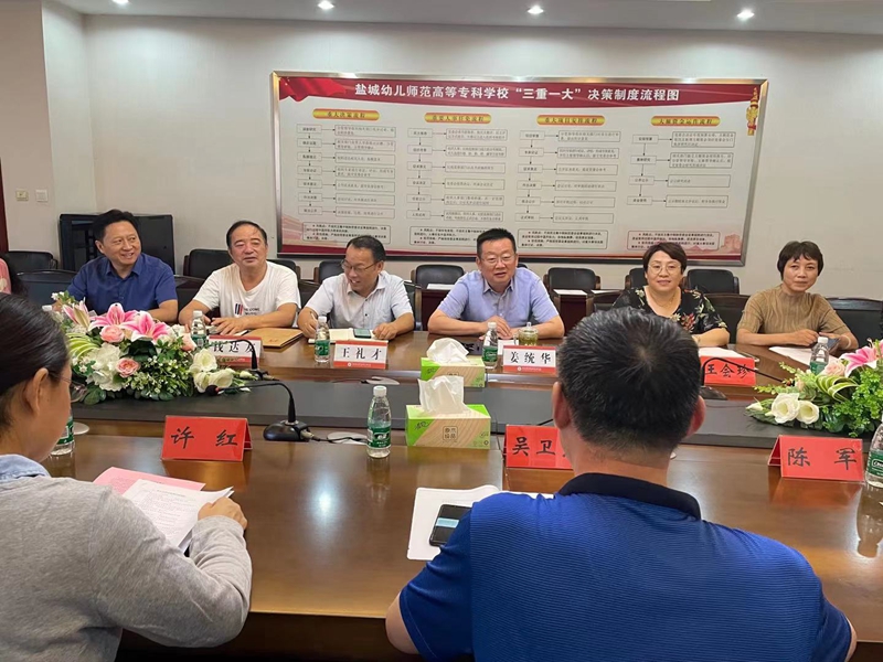 2021年9月17日下午,盐城市职业技能鉴定指导中心吴卫东主任、陈惠科长组织专家对我校申报的职业技能等级认定第三方机构资质进行了现场评估。姜统华校长出席并致欢迎词。学前教育学院一分部、学前教育学院二分部、建筑工程学院、继续教育学院院长及分管院长参加。继续教育学院王礼才院长主持。