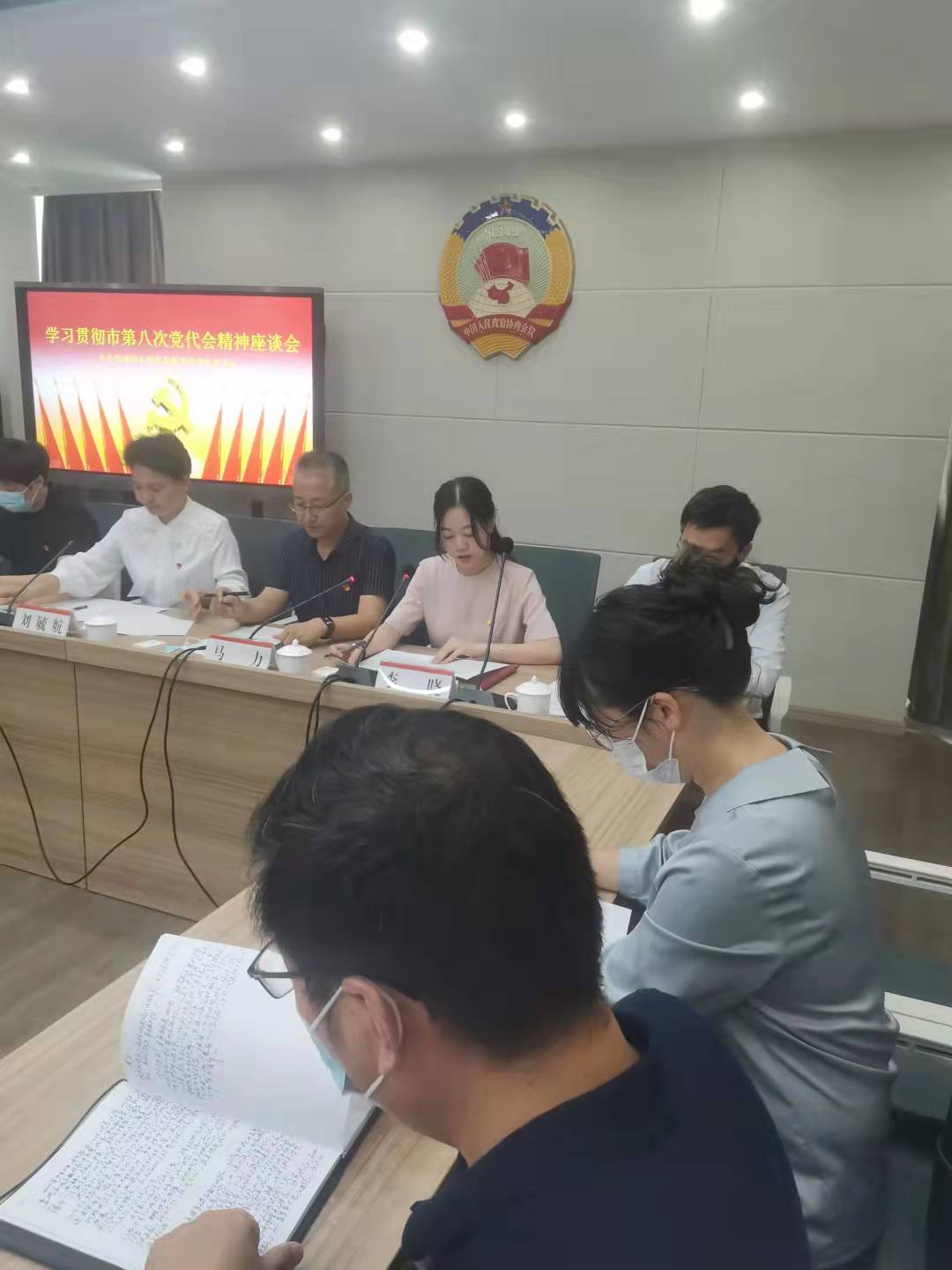 9月29日下午,我校召开学习贯彻市第八次党代会精神座谈会,传达学习市第八次党代会精神。学校党委书记刘毓航,党委委员、纪委书记马力,党委委员、宣传部部长葛红梅出席会议,党委工作部门、团委、工会等职能部门的负责人,市第八次党代会代表李晓老师和新教师党员代表们参加了此次座谈会,座谈会由马力主持。