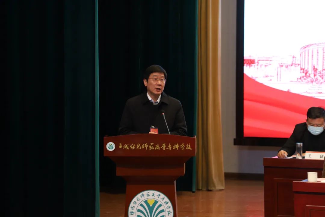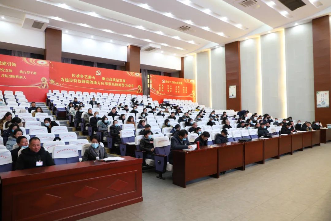 校长姜统华作题为《承前启后谋发展 砥砺奋进谱新篇——奋力开启地方应用型高校建设新征程》的工作报告。他从七个方面回顾了2021年的工作:深化教学改革,人才培养质量明显提升;构筑人才高地,师资队伍质态整体优化;创新科研机制,服务地方能力显著提升;坚持深化合作,学校社会影响持续加强;注重评建结合,人才培养评估成绩喜人;优化治理结构,服务保障水平持续提升;把方向谋大局,党建引领作用全面彰显。他强调,在新的历史方位上,我校应在人才培养质量、师资队伍整体实力、科研显色度和贡献度、办学动力和活力四个方面着力,为把学校建成特色鲜明、更高层次地方应用型高校而努力奋斗。