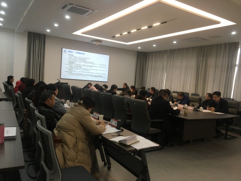 本次会议重点是针对江苏省教育评估院下发的《评估报告书》和专家组在考察意见交流会上提出的意见和建议,进行分析、讨论,商榷整改提高的对策,研磨细化评估整改方案。