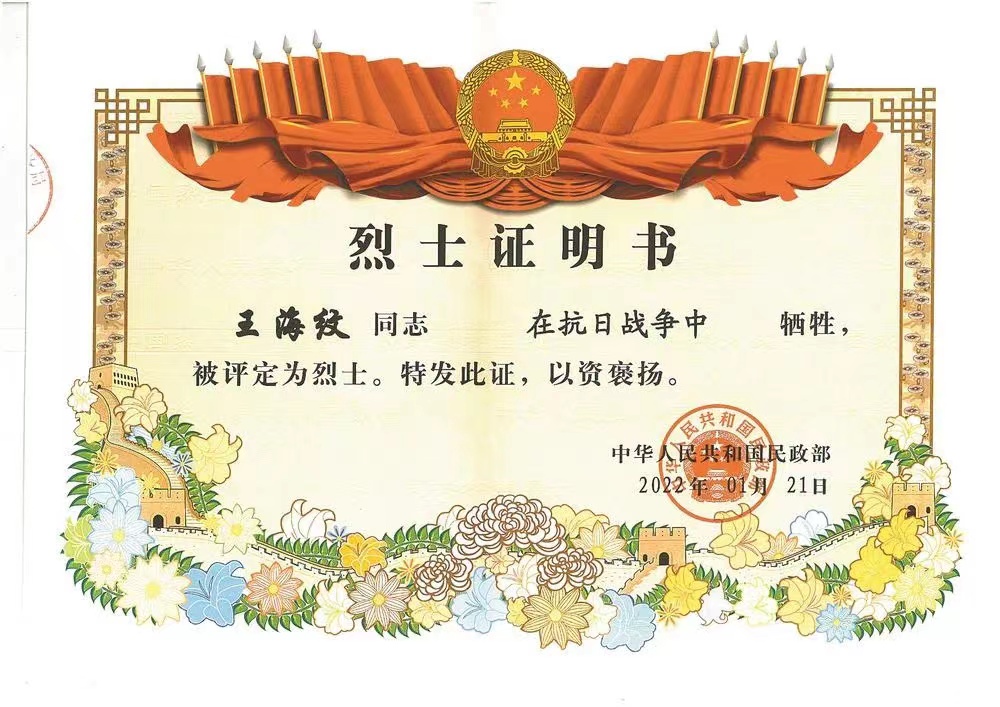 一份迟到81年的王海纹烈士证明书,在清明时节,让人百感交集。