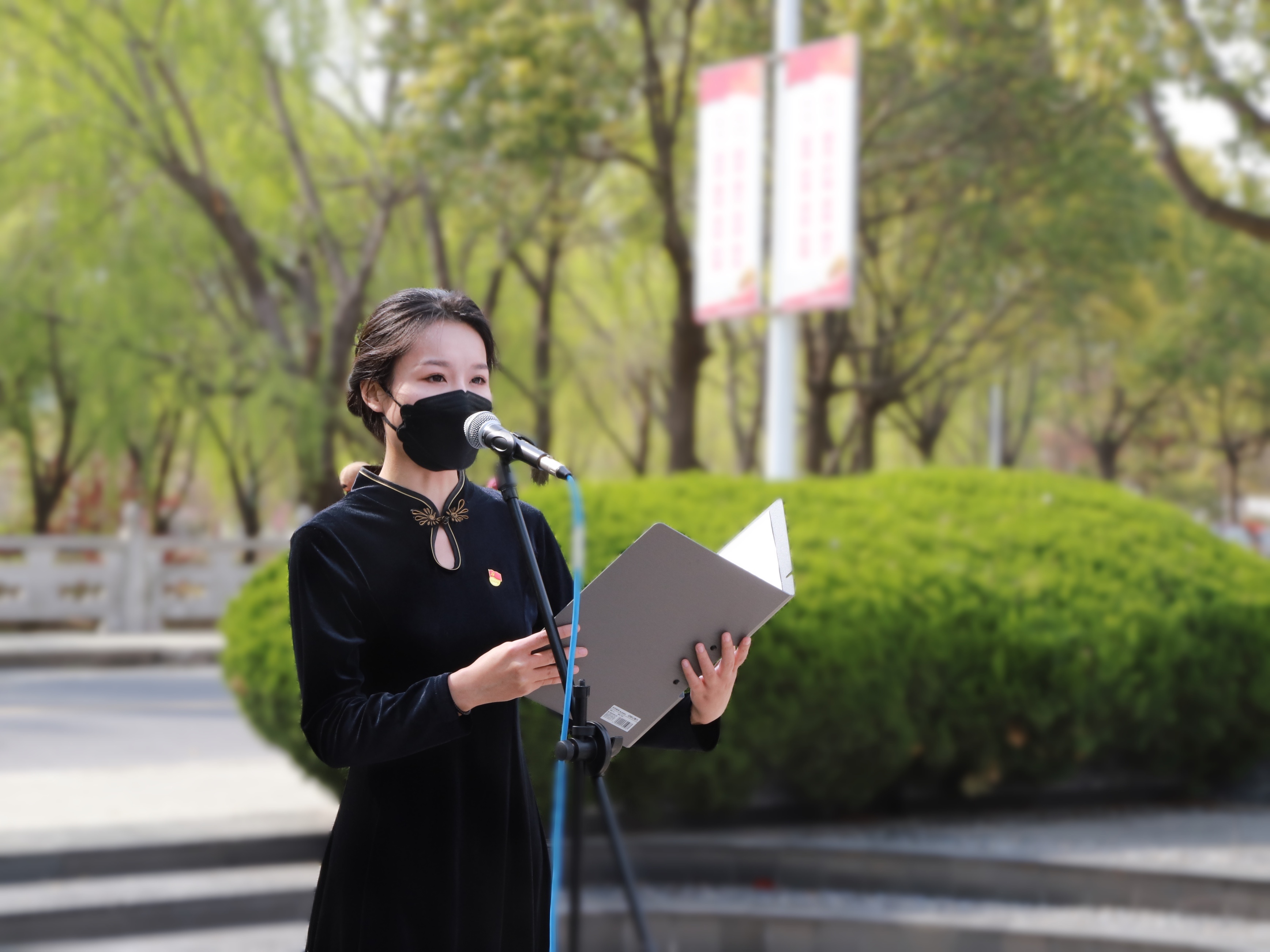 活动现场,音乐剧《华中鲁艺记》王海纹扮演者鲁卢讲述一段往事《一件旗袍的故事》,鲁艺合唱团唱响一首红歌《无名草》,司洁、顾阳卿老师吟诵《悼王海纹·调寄西江月》;全体师生宣誓,做一名红色鲁艺传承人,并依次鞠躬,向英烈敬献鲜花。