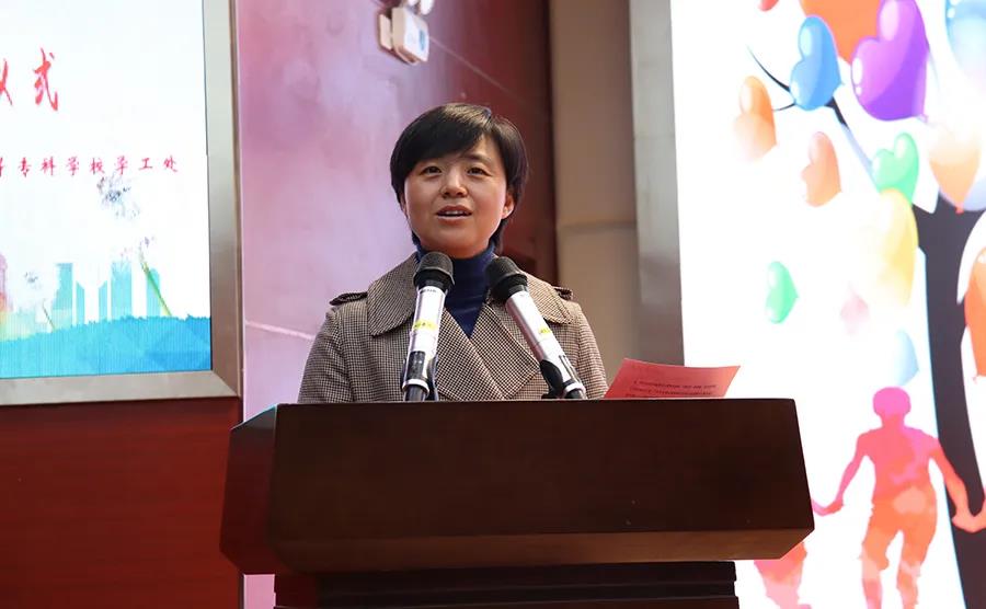 接下来,我校学工处张彬处长致辞,她向特教中专的师生们介绍了我校概况,并对此次开展心理健康融合教育提出三点希望:一是希望通过基地建设深化心理健康教育理念,着力培养学生的健全人格;二是希望通过基地建设为青年学生提供相互交流平台与实践平台,引导学生构建服务意识,增强责任担当;三是希望通过基地建设充分发挥大学生心理健康中心服务地方的功能及实效。