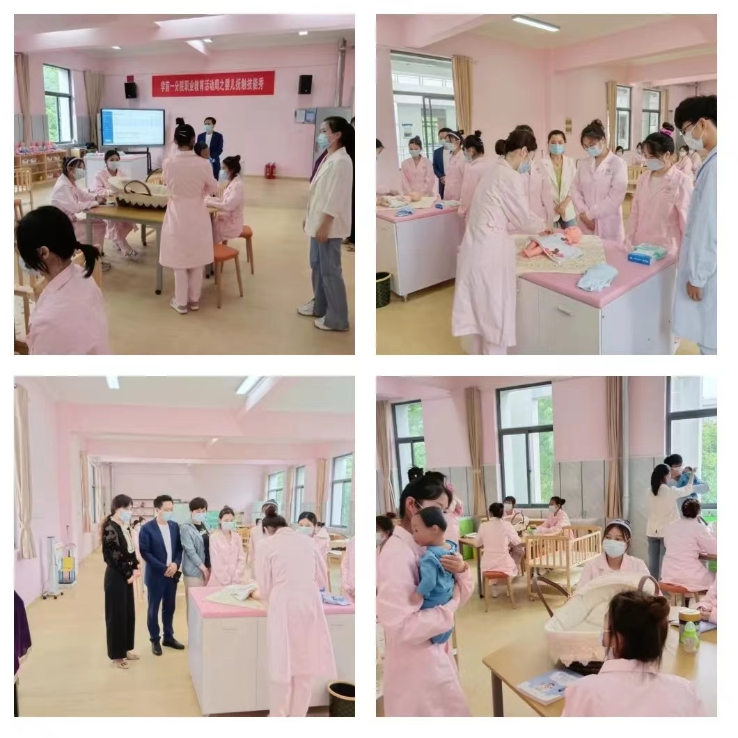 近年来,我校学前教育学院一分院高度重视托育服务人才培养,在课程改革、师资建设、校企合作、社会服务等方面创新方法,成绩显著。学院邀请高校、幼儿园、托育机构、妇幼保健院、行业协会等专家共同研制人才培养方案,顶层设计把握专业建设方向。沈莹莹老师牵头建设《婴幼儿家庭教育》校本教材和精品课程,创新教育教学方式,深化课程教学改革。尹藜蓉、刘林、崔静文、嵇泽胜等教师备赛江苏省家政职业技能竞赛育婴员赛项比赛,尹藜蓉老师荣获赛项亚军的可喜成绩。