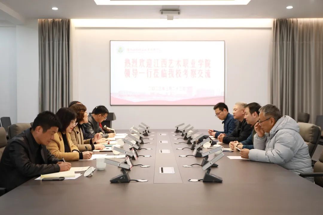 3月23日,江西艺术职业学院党委委员、副院长廖旭一行到我校进行考察指导,我校副校长崔霞等陪同交流互动。