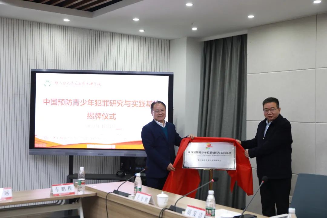 胡发清和戴永湖为“全国预防青少年犯罪研究基地”揭牌。此次调研指导是我校平安校园创建的及时雨、校内外协同育人超链接、法制安全教育的锦上花,今后我校将持续开展丰富的学法、知法、守法、用法宣传教育活动,为学校高质量发展保驾护航。