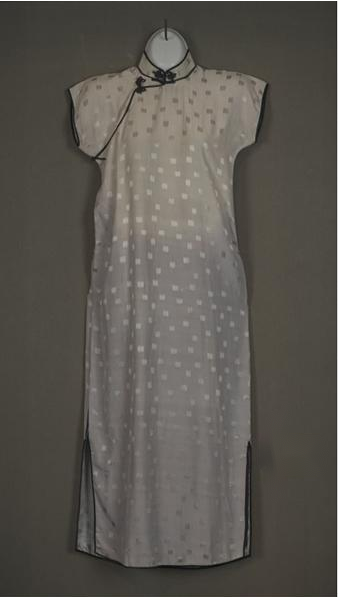 盐城新四军纪念馆展橱内,一件银灰色旗袍引人注目。丝质面料素雅纯净,黑色锁边针脚细密,裙摆褶痕清晰可见。虽然表面覆着的黄褐色使其看起来略显苍凉,但仍不掩其做工的考究。就是这样一件旗袍,穿越历史烟云,触发了盛小华最初开设这堂音乐思政课的思想来源,成为与82年前的青春对话。