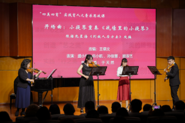 近年来,音乐学院在学生教育方面围绕“四美四育”美育育人体系,立足于学科特色,开展系列“音乐+思政”活动,致力于培养未来“德艺双馨”的音乐工作者。本堂音乐思政课的主讲人盛小华是盛氏小提琴家族的第三代,长期以来,盛氏家族的小提琴家们都秉承对音乐艺术的热爱和执着追求,代代传承着强烈的爱国思想与“红色基因”。盛小华老师也一直致力于将音乐专业教育与学生爱国主义教育进行融合与联动,开办多次音乐思政课,取得了较好的学生教育成效。
