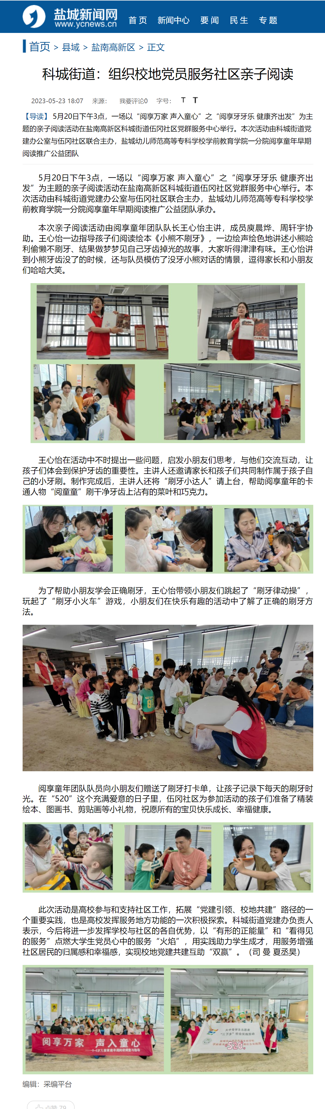 盐城新闻网:科城街道:组织校地党员服务社区亲子阅读