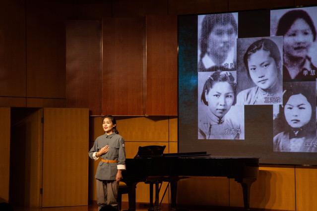 音乐学院研三学生顾添艺说:“在盐城幼专铁军艺苑党史教育基地,王海纹烈士的事迹让我的心灵受到极大震撼。排练时,仿佛一次次地穿越回当时场景,耳畔是华中鲁艺文艺前辈的激昂歌声,眼前仿佛浮现出王海纹烈士身着旗袍的优雅背影,脑海里奔腾无数爱国青年为民族奋斗牺牲的身影。作为新时代的文艺工作者,我们要传承先辈们的精神品质,用青春和奋斗成就未来中国的美好。”