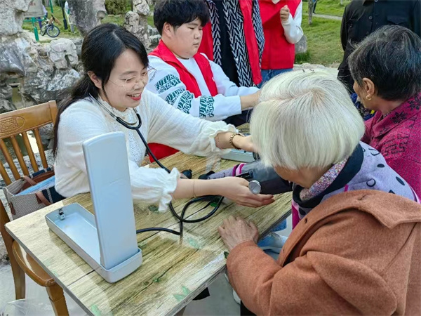 活动现场,志愿者们和老人进行了深入交流,询问他们最近健康状况,了解生活中遇到的问题和需求。健康的身体是老人安享晚年的基础,同学们还发挥专业特长,给老人颈背部按摩放松,测量血压,并给予高血压患者健康指导。