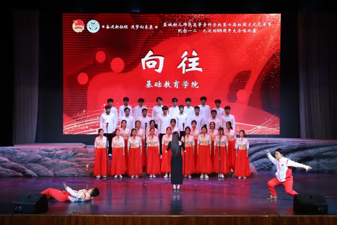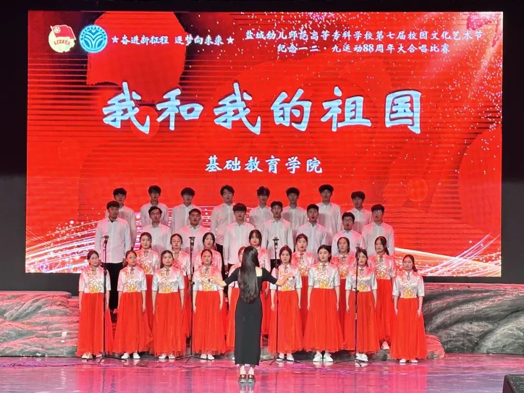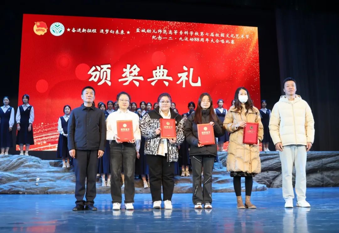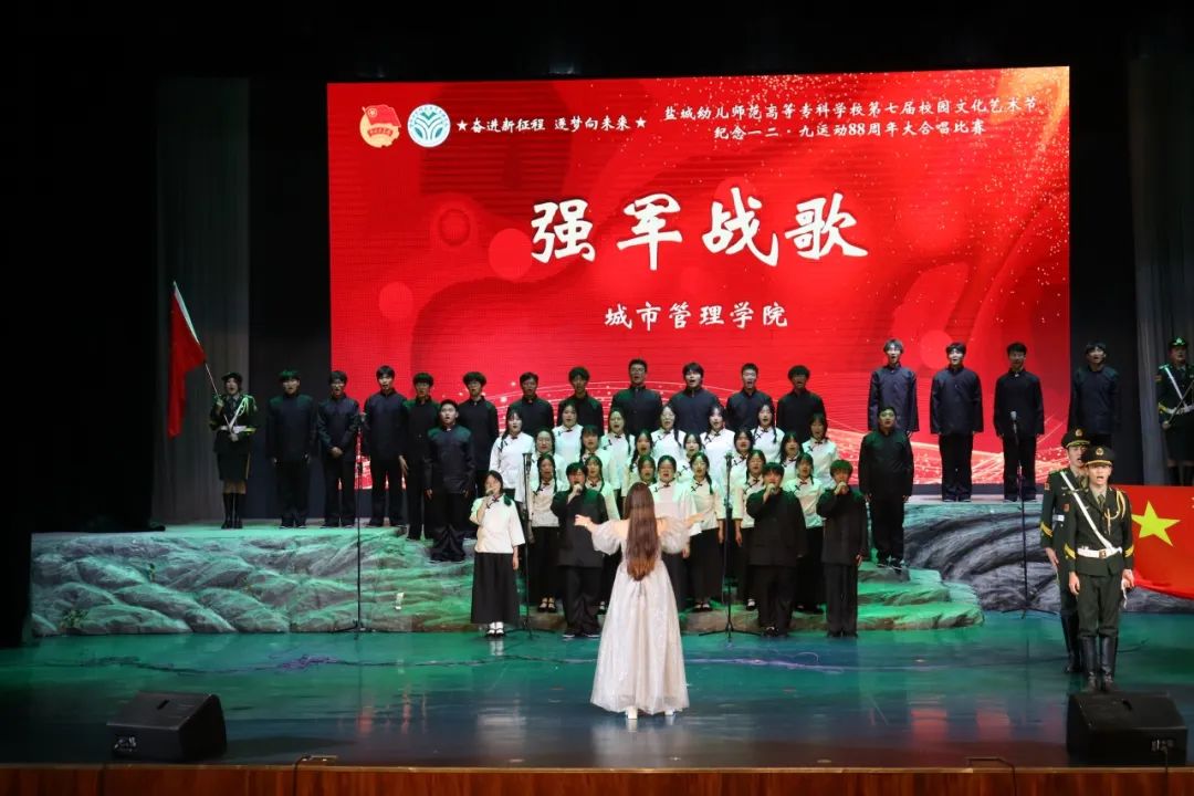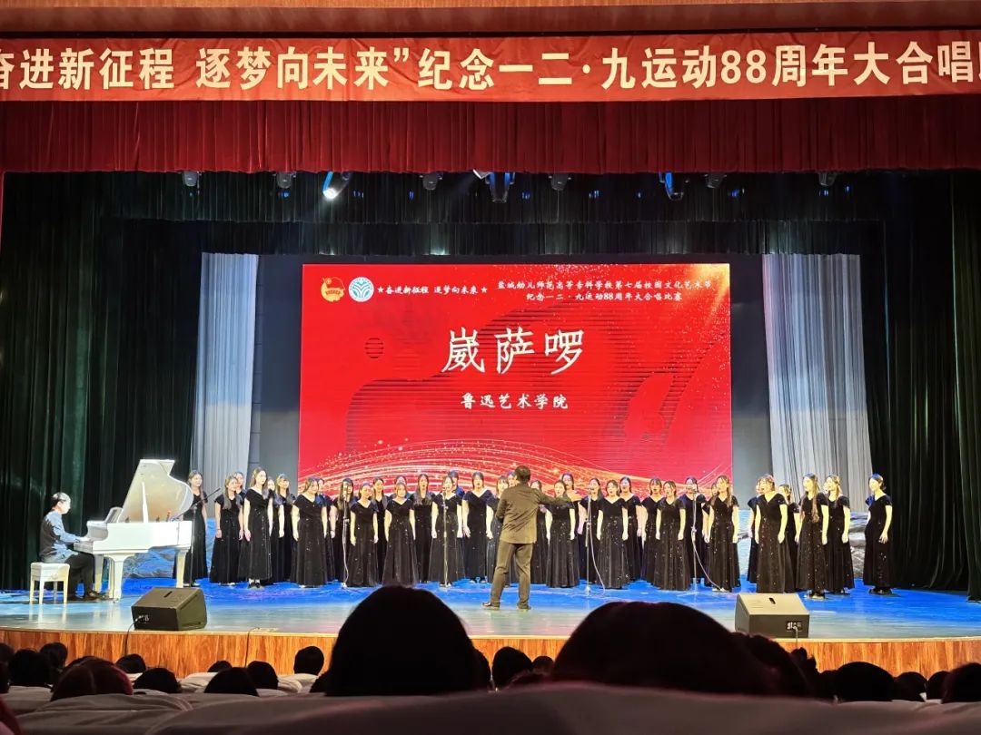 赓续红色血脉,唱响青春华章。为纪念“一二·九”运动88周年,引领我校学生深刻了解历史、铭记历史,培养爱党、爱国、爱校情怀,12月8日下午,由校团委主办、学前教育学院一分院承办的“奋进新征程 逐梦向未来”纪念“一二•九”运动88周年大合唱比赛在鲁艺剧场隆重举行。校党委委员、副校长戴永湖、各学院党总支书记、分管学生工作副书记、团总支书记等出席比赛。