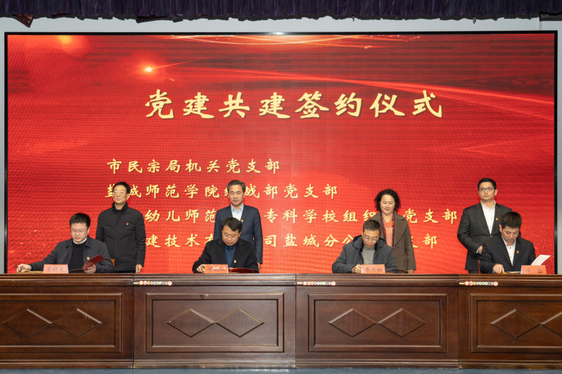 活动分为现场观摩和主题党日活动两个阶段。与会人员参观了盐城师范学院江苏省高校统一战线同心共育石榴红同心教育实践基地和校史馆。主题党日活动上,盐城市民宗局机关党支部、盐城师范学院统战部党支部、盐城幼儿师范高等专科学校组织部党支部、中邮建技术有限公司盐城分公司党支部书记上台签订党建共建协议。四方决定就组织建设互促、党员干部互动、党建载体互用、科学发展共赢建立长期、稳定的协作关系,标志着多渠道、多层次、多形式的合作开启新篇章。