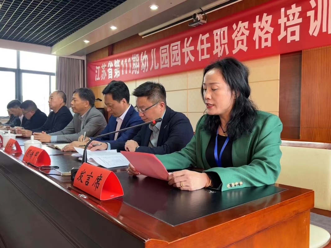 大丰区实验幼儿园副园长王苗苗代表学员发言,她表示将珍惜此次培训机会,确保最佳的学习状态,学以致用,以创新的精神和实践的智慧,在交流、分享中与大家一起成长。