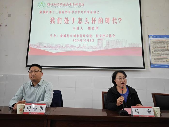 为了进一步深化当代大学生对新时代科技的理解,了解我国近年来发展新能源及能源转型的背景,10月9日,城市管理学院、科学技术协会在阶梯教室九开设《我们处于怎么样的时代》讲座。本次讲座特邀江苏省产业教授,江苏昆仑互联科技有限公司副总裁、联合创始人、机电一体化高级工程师周必华教授,为学院计算机教研室、计算机类专业2022级和2023级的同学带来了精彩的演讲,讲座由杨谢副院长主持。