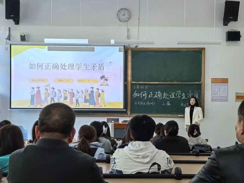 2024年10月30日下午2点,鲁迅艺术学院视觉传达(高)2301班在北校区新艺术中心公共教室一成功举办了以《如何正确处理学生矛盾》为主题的班会公开课。此次公开课由王蕴老师主讲。党委委员、副校长戴永湖以及学生处、安保处等相关部门负责人,各学院学工院长、团总支书记、辅导员代表到场观摩,学院党总支书记陈德田出席。