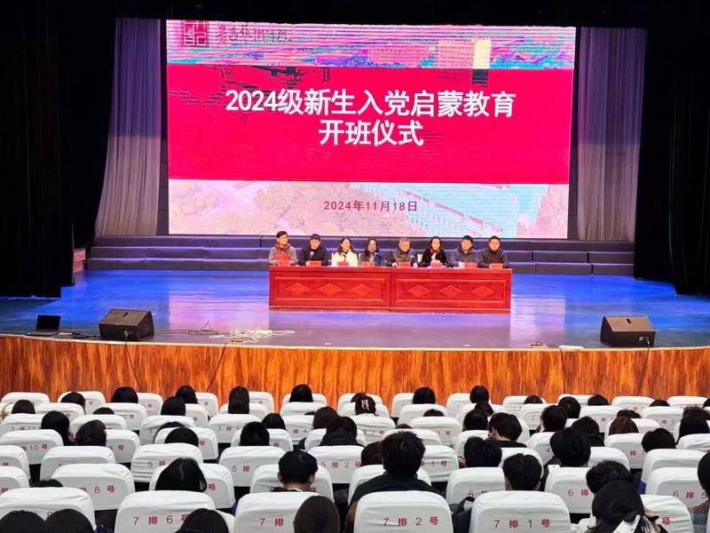为引导2024级新生树立正确的世界观、人生观和价值观,激发爱国情怀与入党热情,鲁迅艺术学院于11月18日下午在鲁艺剧场开展2024级新生入党启蒙教育开班仪式。全体2024级新生以及辅导员(班主任)参加。本次启蒙教育由马克思主义学院施佳老师主讲。出席开班仪式的领导有党总支书记陈德田,院长马骥,副院长鲁凌云、叶丹、车鹏程,教务科长陈涛,团总支书记刘勇,办公室主任张淇。