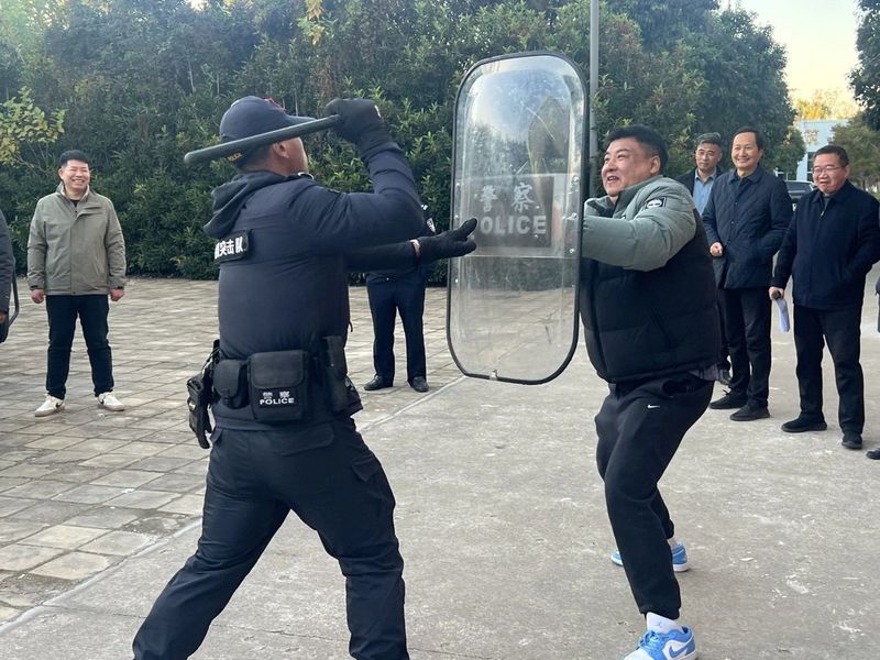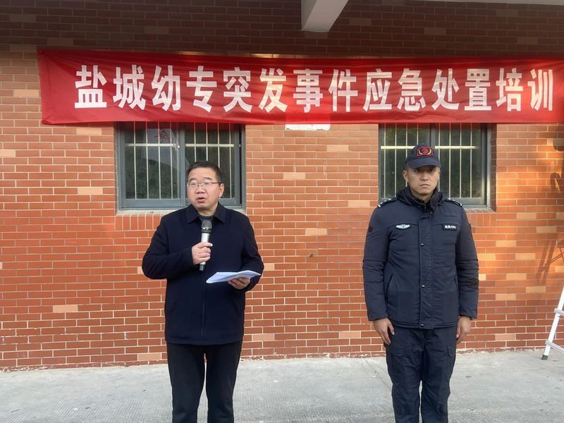 为提升我校应对突发事件的能力与安全管理水平,11月29日,盐南高新区公安分局特巡大队巡特警在我校学海路校区西操场开展突发事件先期处置培训。活动由副校长戴永湖主持。特巡大队巡特警们对参训人员进行防暴恐应急处置培训,他们通过动作要领讲解、参训人员实操、现场模拟演练相结合的方式,向参训人员传授了突发事件先期应急处置时盾牌、钢叉等的使用流程、技巧及人员控制等关键知识与技能,有效增强了参训人员的安全意识与应急处理能力,为维护校园安全稳定奠定了坚实基础。