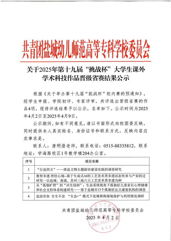 关于2025年第十九届“挑战杯”大学生课外学术科技作品晋级省赛结果公示_00