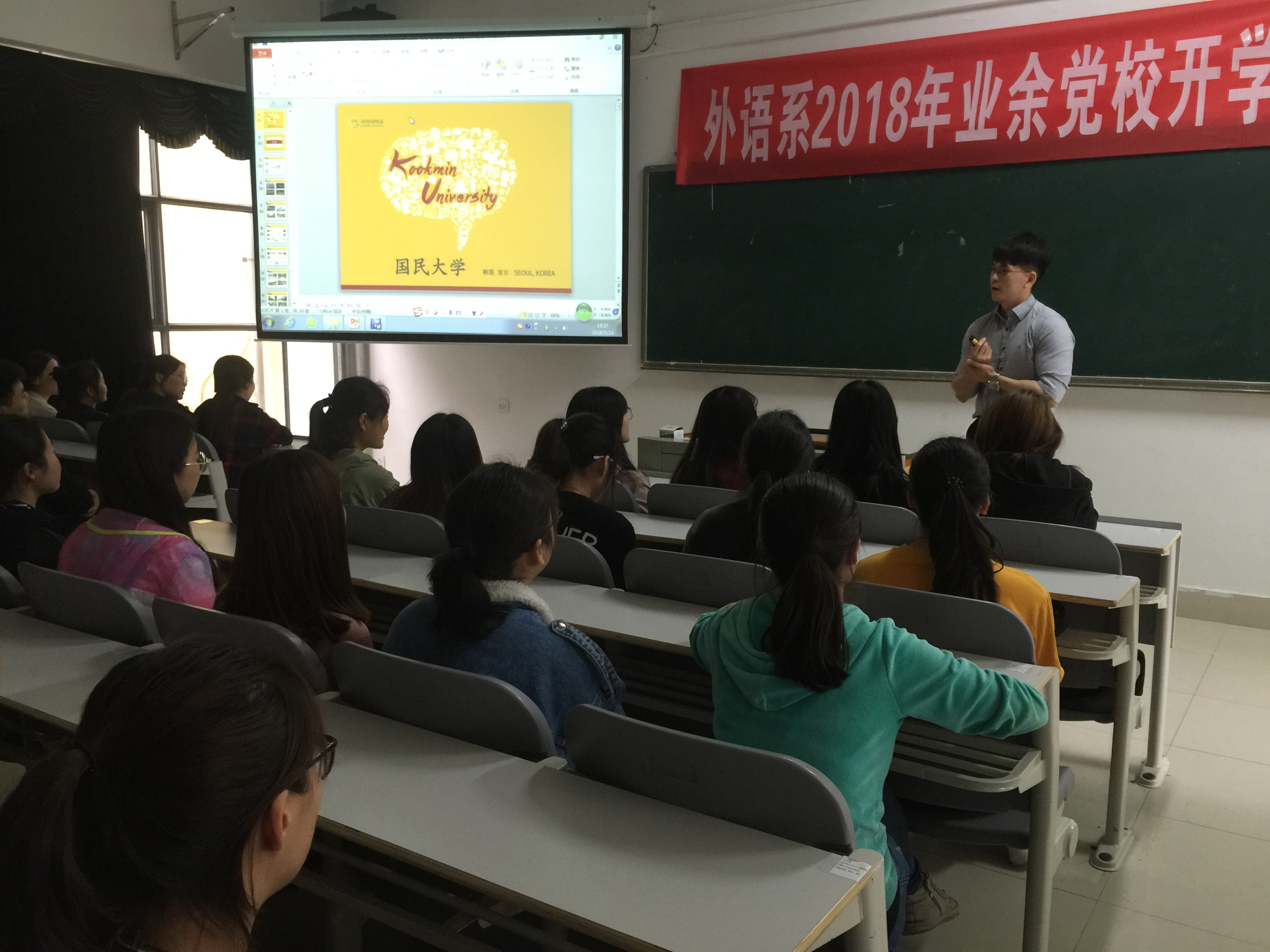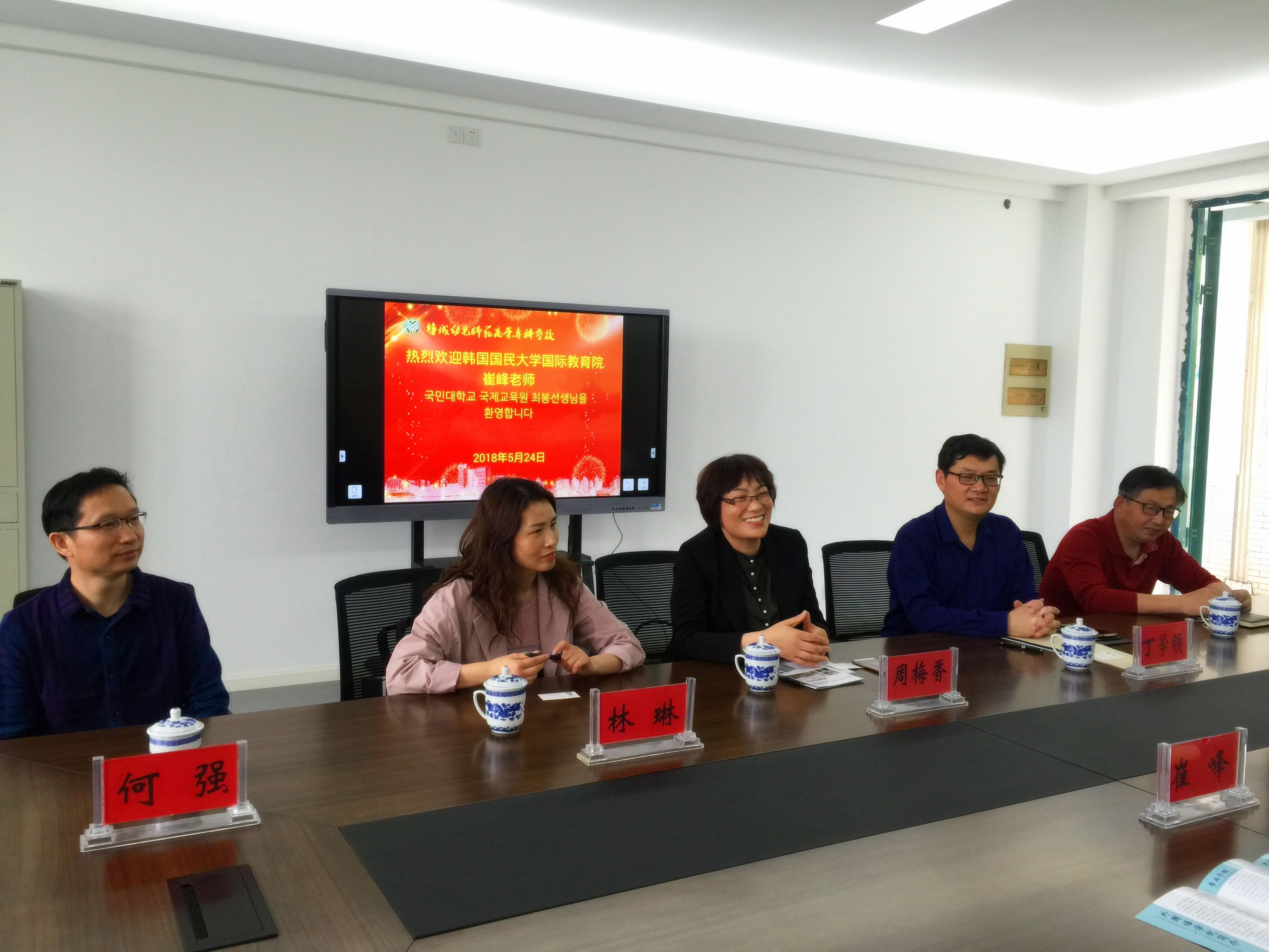 2018年5月24日,韩国国民大学国际教育部崔峰主任到我系参观访问,洽谈合作事宜。校办公室周梅香主任、外语系管理班子成员和教师代表接待了来宾。