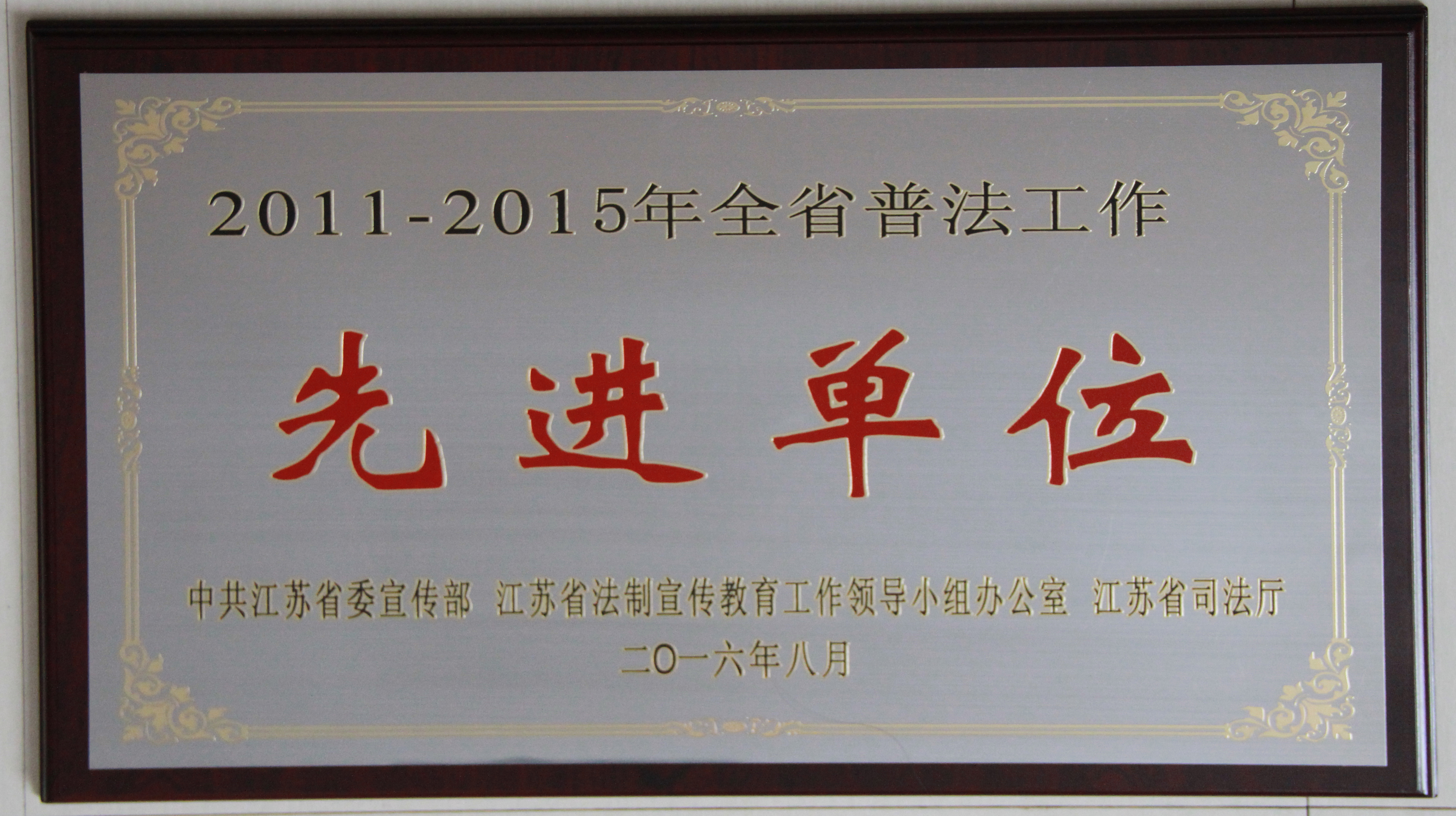 我校喜获江苏省普法工作先进单位称号