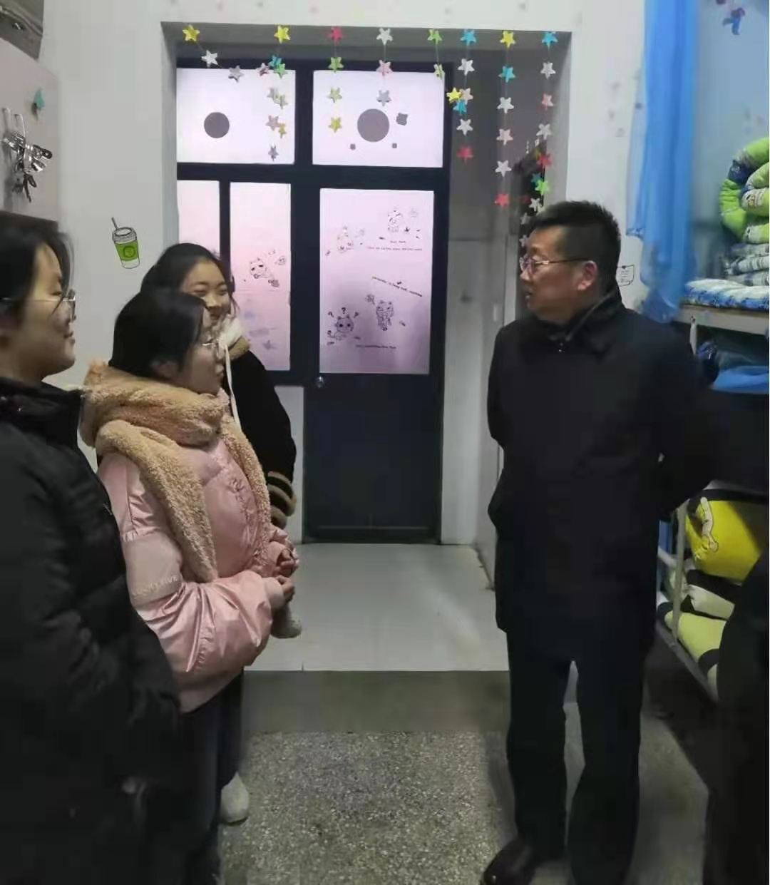 近日,寒潮来袭,气温骤降。为确保学生温暖过冬,校长姜统华带领学工处张彬、李文飞等同志深入学生宿舍,看