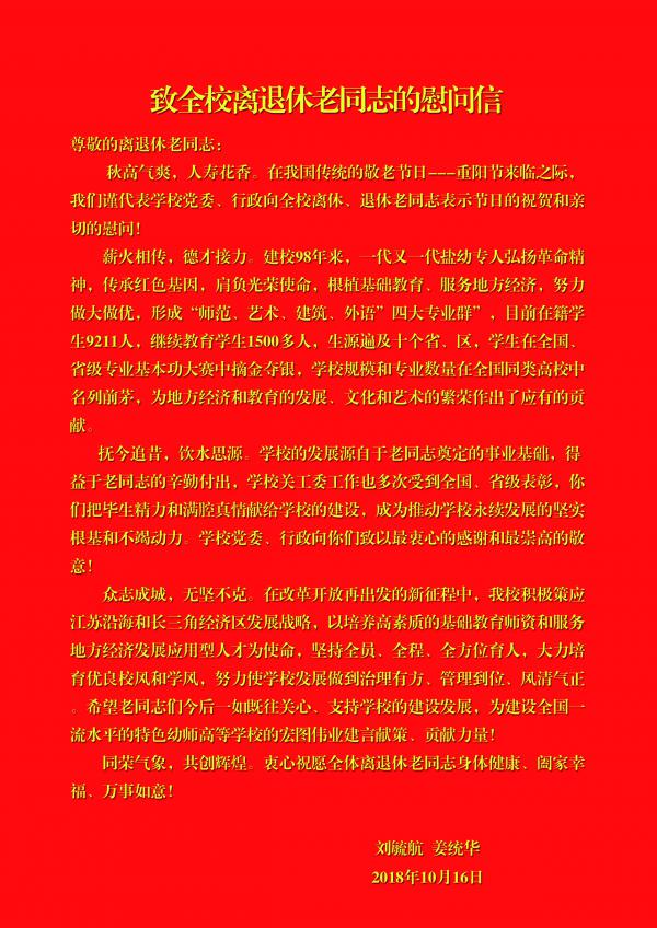 致全校离退休老同志的慰问信