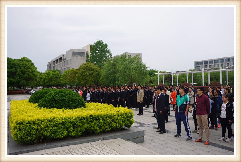 5月2日上午,我校南北校区同时举行了本学期的第三次升国旗仪式。仪式上,校领导徐伯静、戴永湖分别代表学