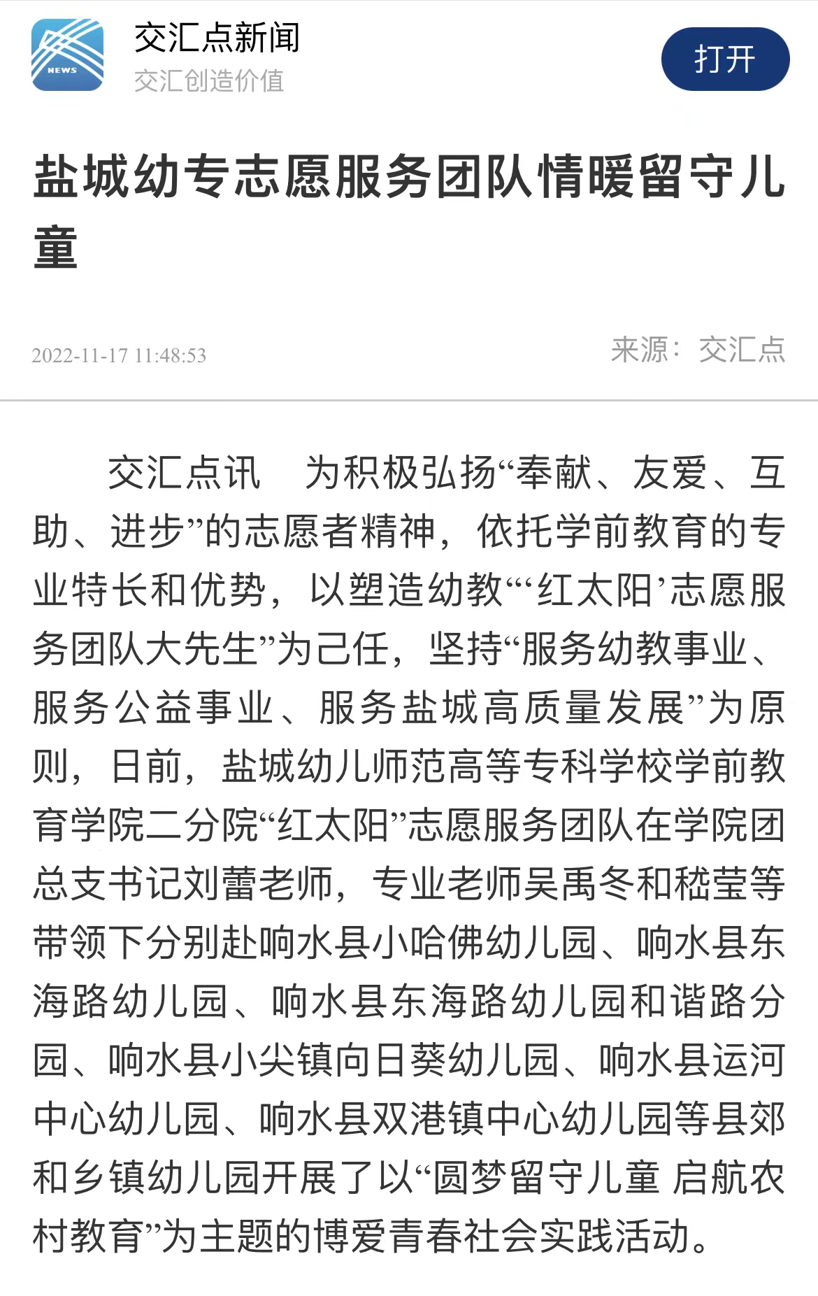 交汇点:盐城幼专志愿服务团队情暖留守儿童