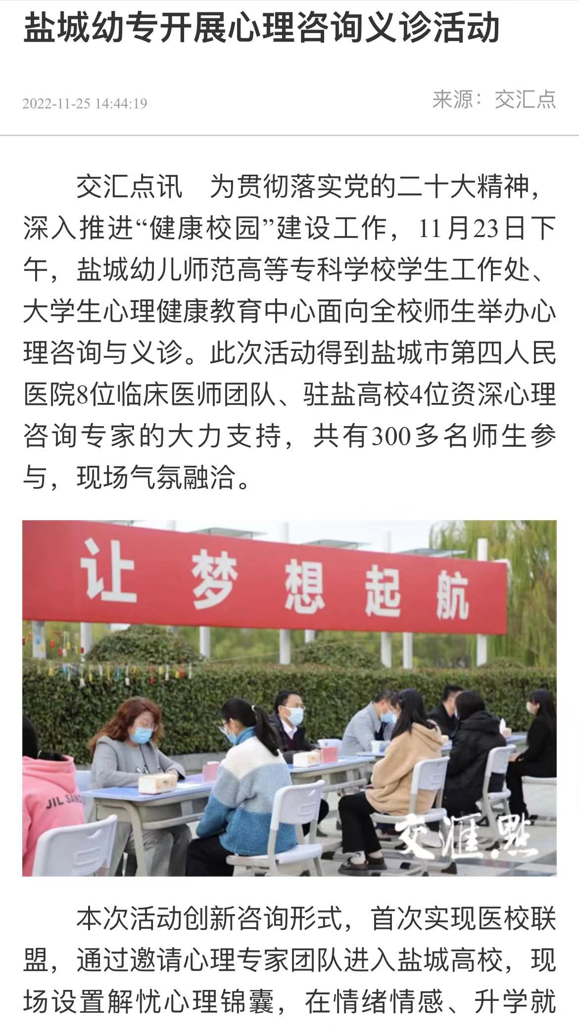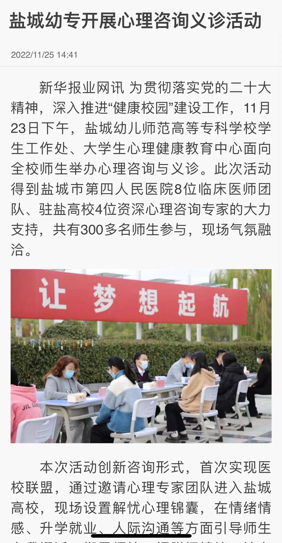 新华报业网:盐城幼专开展心理咨询义诊活动
