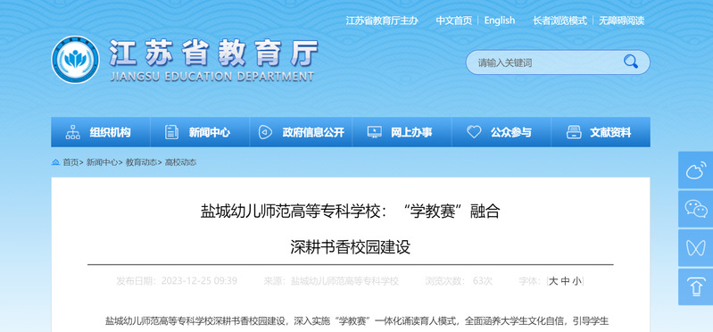 江苏省教育厅:盐城幼儿师范高等专科学校:“学教赛”融合 深耕书香校园建设